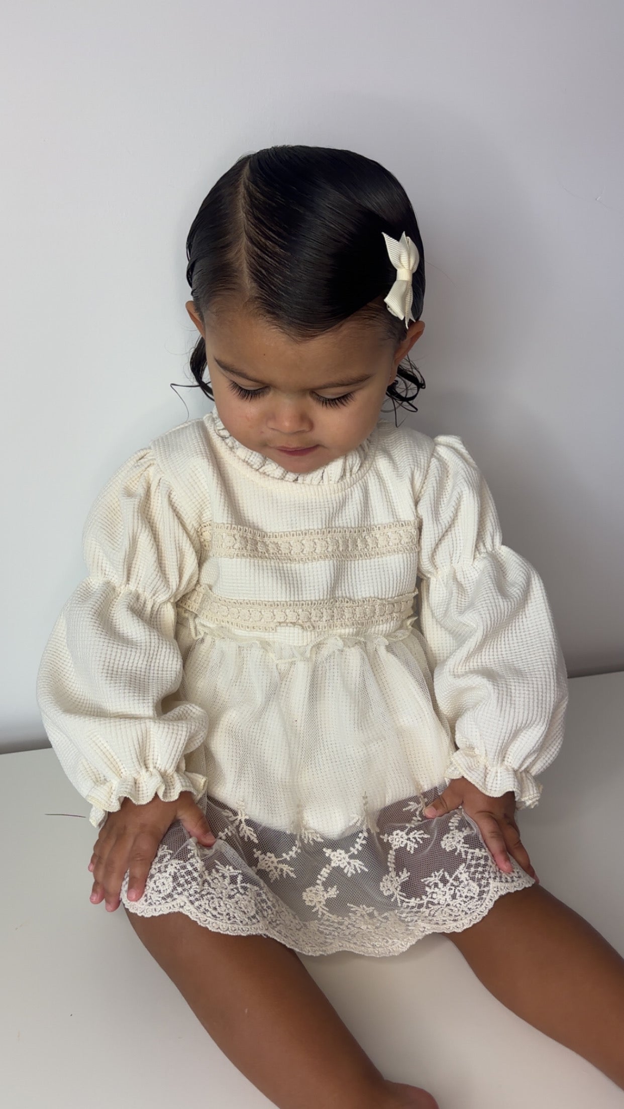 The Solenne Romper is a beautifully refined piece designed to feel like a modern heirloom. Crafted in a soft ivory waffle-textured fabric and finished with a delicate lace overlay skirt, this romper blends structure and romance in the most effortless way.
